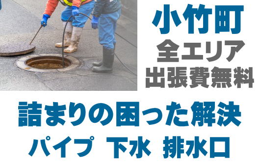 小竹町で排水つまり、トイレ詰まり、シンクつまりなどの排水トラブルはお任せください。店舗の厨房、グリストつまりも対応しております。