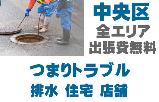 中央区の水回りの詰まりを即解決!キッチン、トイレ、風呂、洗面、マンホール、雨どい、シンク、厨房、グリストなどの詰まりトラブル対応。