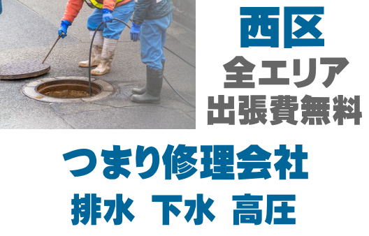 西区で下水つまり、トイレの溢れ、厨房やグリストラップつまりを修理を行っている会社です。